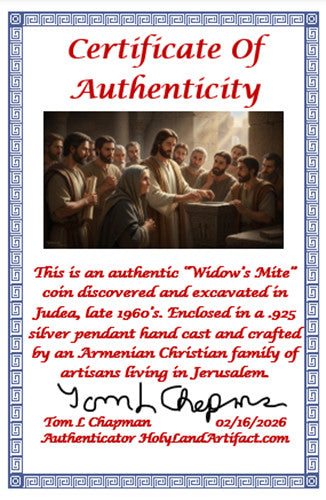Widows Mite Pendant .925 Silver Holy Land Artifact 5.7 grams No Chain COA 31