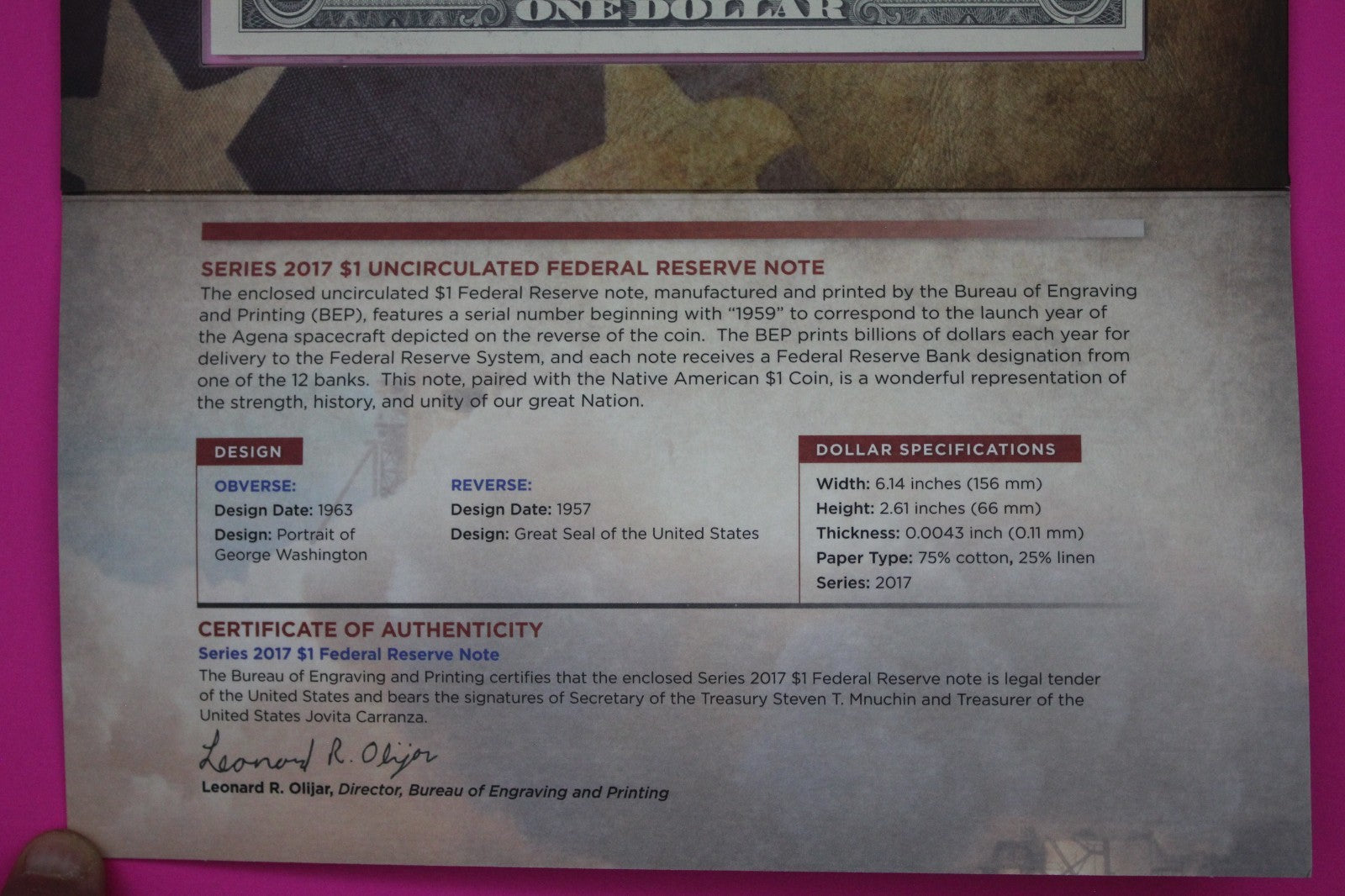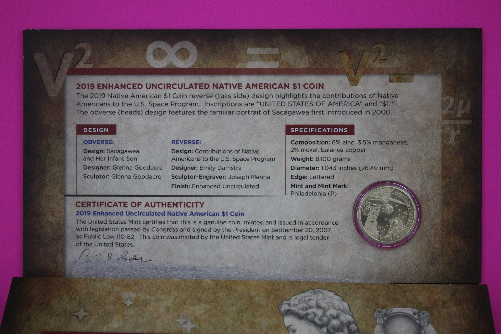2019 Coin & Currency Set Enhanced Infant Child BU Dollar & $1 Note COA 9004